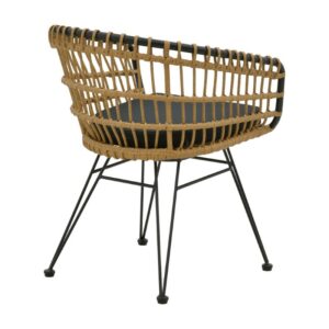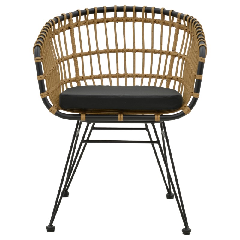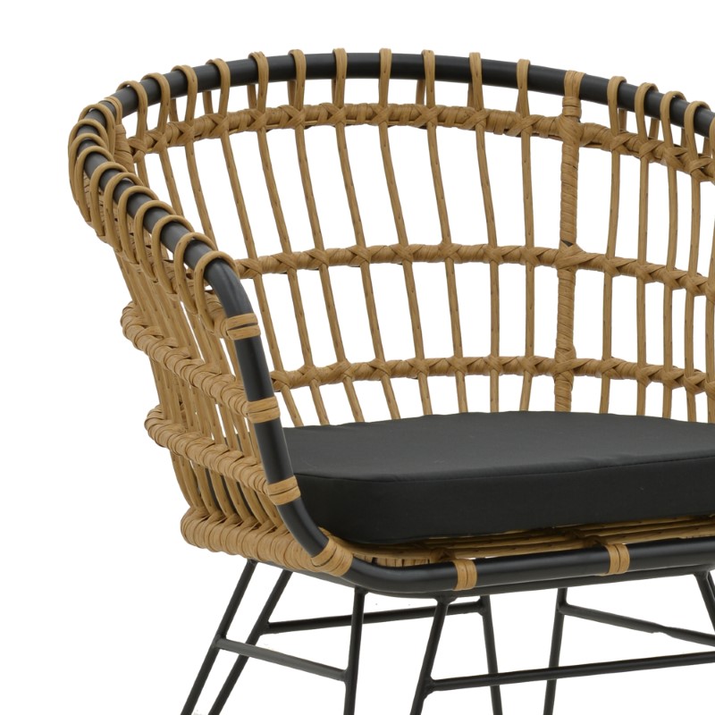 Πολυθρόνα Naoki pakoworld με μαξιλάρι pe φυσικό-μαύρο μέταλλο 62x62x70εκ