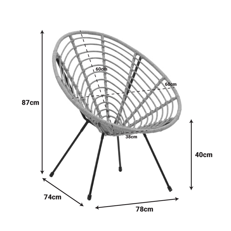 - Κυρίως επιφάνεια καρέκλας από PE rattan. Το PE rattan είναι ένα είδος οικολογικού συνθετικού rattan, ανακυκλώσιμο και με μεγαλύτερη ανθεκτικότητα σε σχέση με τα άλλα είδη.