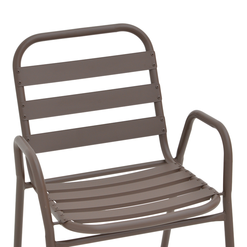 - Σταθερός σκελετός από μέταλλο εξαιρετικής ποιότητας με αντοχή σε φθορά και χρόνο, ενώ τα κομμάτια έδρας και πλάτης είναι κατασκευασμένα από φέτες αλουμινίου. Το μέταλλο παρέχει ανθεκτικότητα και σταθερότητα, ενώ οι φέτες αλουμινίου προσθέτουν ελαφρότητα και μια μοντέρνα αίσθηση στον σχεδιασμό. Η πολυθρόνα αυτή είναι ιδανική για χρήση σε εξωτερικούς χώρους, καθώς η ανθεκτικότητα στις καιρικές συνθήκες του αλουμινίου την καθιστά ανθεκτική σε έκθεση στον ήλιο και την υγρασία.