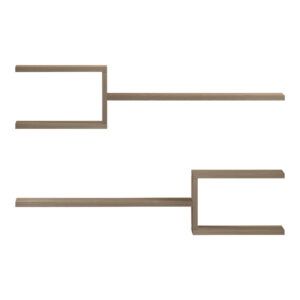 - Μοντέρνος, γεωμετρικός σχεδιασμός με εναλλασσόμενα ανοιχτά και κλειστά τμήματα. Η διάταξη επιτρέπει να τοποθετούνται τα ράφια παράλληλα, αντικριστά ή με κλιμακωτό τρόπο, δίνοντας την αίσθηση ότι “κλειδώνουν” μεταξύ τους.