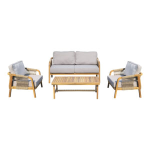 - Σκελετός κατασκευασμένος από μασίφ ξύλο ακακίας που συνδυάζεται αρμονικά με πλέξη από σχοινί PP, προσφέροντας στιλ και αντοχή σε φυσικό χρώμα.