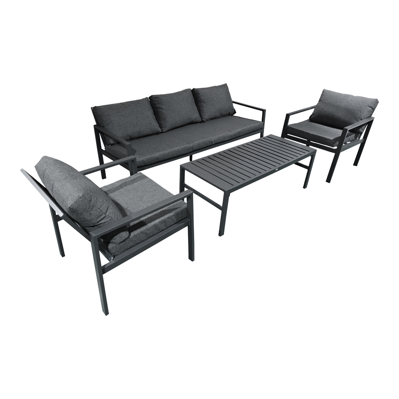 Τα μαλακά γκρι μαξιλάρια προσθέτουν άνεση και φινέτσα, ενώ οι καθαρές γραμμές του σετ το καθιστούν κατάλληλο για κάθε στυλ διακόσμησης. Περιλαμβάνει έναν διθέσιο καναπέ, δύο πολυθρόνες και ένα τραπεζάκι, ιδανικά για στιγμές χαλάρωσης με φίλους ή οικογένεια.