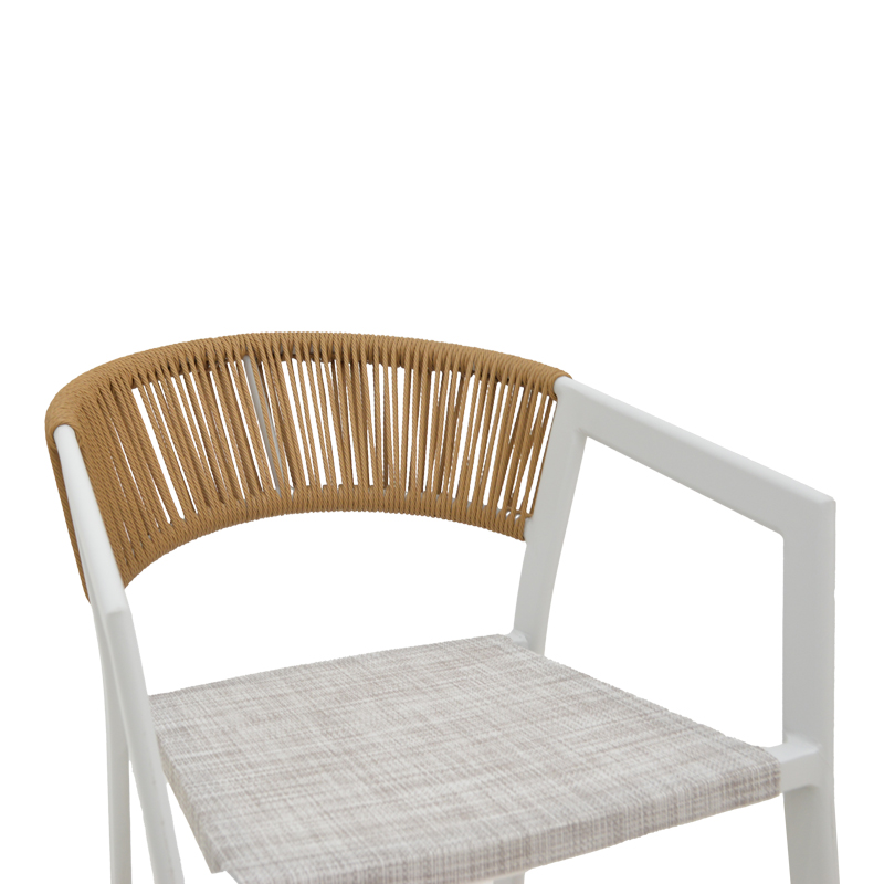 * Έδρα κατασκευασμένη από textilene. Το textilene είναι ένα εξαιρετικά ανθεκτικό υλικό που χρησιμοποιείται ευρέως σε επίπλωση εξωτερικών χώρων και εξαρτήματα. Αποτελείται από πολυεστερικές ινώδεις που επικαλύπτονται με PVC (πολυβινυλοχλωρίδιο), δημιουργώντας ένα υλικό που συνδυάζει ανθεκτικότητα, αντοχή στις καιρικές συνθήκες και εύκαμπτη υφή. Το υλικό αυτό επιτρέπει τη διέλευση του αέρα, βοηθώντας στη διατήρηση μιας δροσερής αίσθησης κατά τη χρήση.