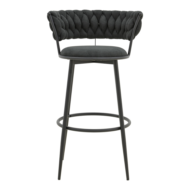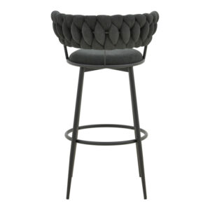 Αναβαθμίστε τον χώρο σας με το σκαμπό μπαρ Alkia, έναν συνδυασμό κομψότητας και άνεσης. Η χαρακτηριστική πλέξη στο πίσω μέρος προσθέτει μια ενδιαφέρουσα και οπτική γοητεία, ενώ το άνετο κάθισμα υπόσχεται ευχάριστες στιγμές χαλάρωσης. Στηριγμένο σε λεπτά, αλλά σταθερά μεταλλικά πόδια σε μαύρο ματ φινίρισμα, το σκαμπό μπαρ Alkia διαθέτει επίσης ένα πρακτικό στήριγμα ποδιών για επιπλέον άνεση.