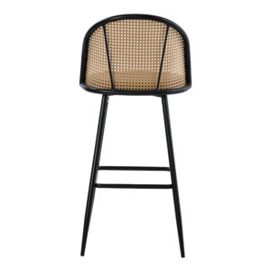 Σκαμπό μπαρ Kace pakoworld pe rattan φυσικό-ανθρακί pu-μαύρο μέταλλο 43x55x102εκ