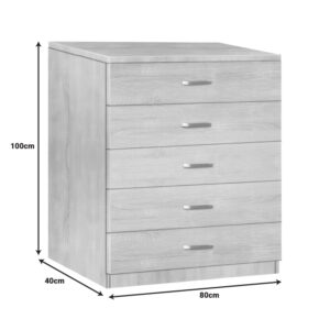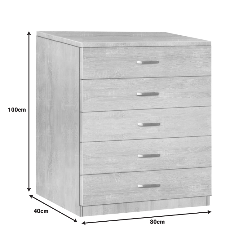 - Πέντε συρτάρια που προσφέρουν άπλετο χώρο για αποθήκευση ρούχων και αντικειμένων