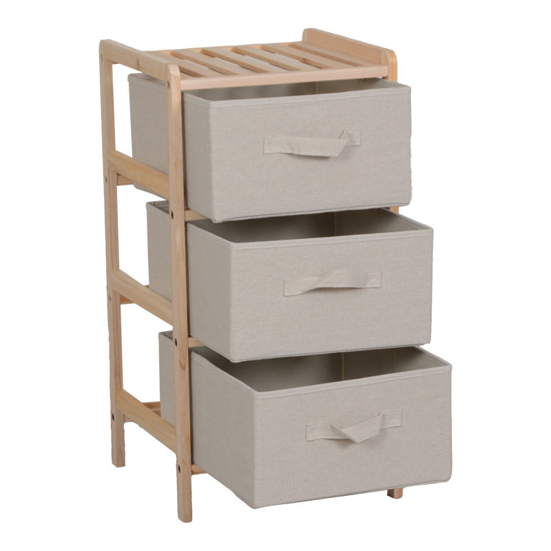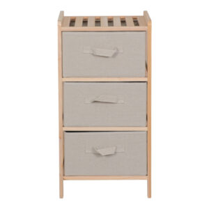Οργανώστε τον χώρο σας με στυλ και ευκολία χάρη σε αυτή την compact και ευέλικτη συρταριέρα. Με σκελετό από ανθεκτικό ξύλο και τρία υφασμάτινα συρτάρια, αποτελεί την ιδανική λύση για να τακτοποιήσετε τα προσωπικά σας αντικείμενα με έναν καλαίσθητο τρόπο.
