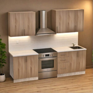 Το σετ κουζίνας Festa V είναι μια κομψή και λειτουργική επιλογή καθώς ο σχεδιασμός της συνδυάζει την απλότητα με την πρακτικότητα, προσφέροντας μια μοντέρνα αισθητική που ταιριάζει σε όλα τα στυλ διακόσμησης. Η διάταξη των ντουλαπιών και του πάγκου εργασίας είναι εξαιρετικά εργονομική, επιτρέποντας την εύκολη πρόσβαση σε όλα τα απαραίτητα μαγειρικά σκεύη και συσκευές.