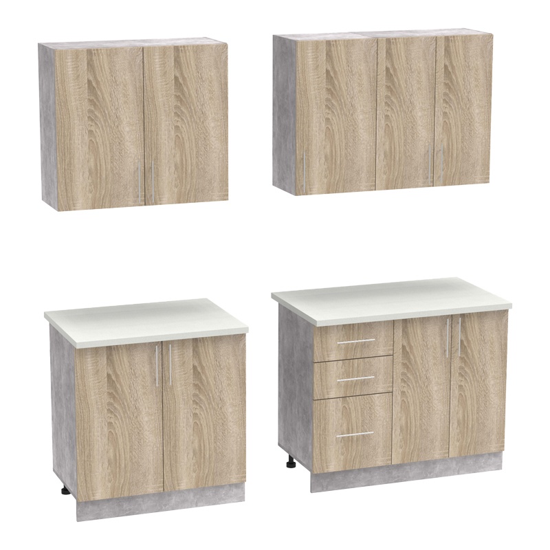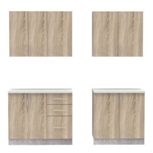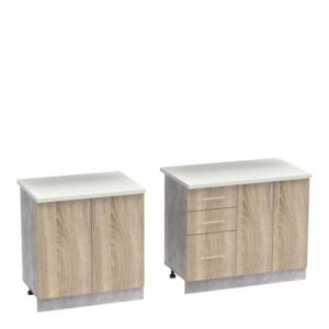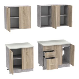 - Κάτω: δύο διπλά ντουλάπια και 3 ευρύχωρα συρτάρια