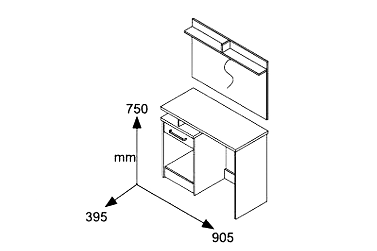 - Η σύνθεση περιλαμβάνει την κονσόλα με ένα μεγάλο ντουλάπι & ένα συρτάρι, καθρέπτη με βοηθητικά ψηλά ράφια και εξτρά ένα σκαμπό.