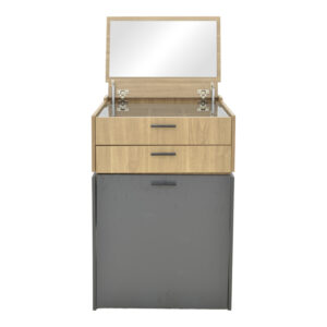 - Διαθέτει ενσωματωμένο καθρέπτη και 2 συρτάρια για αποθήκευση και οργάνωση των αξεσουάρ σας.