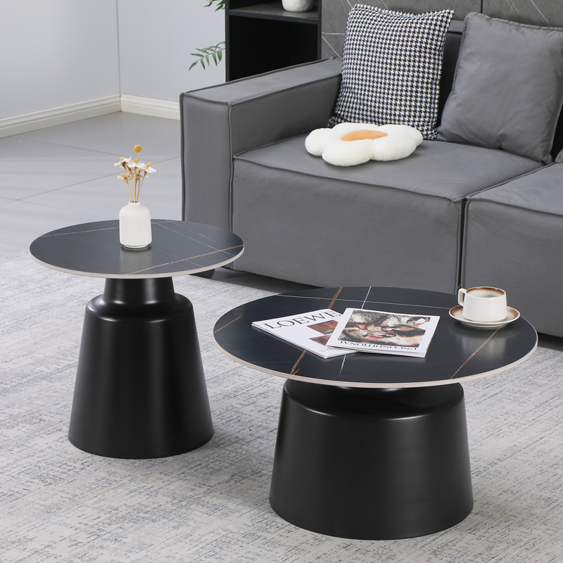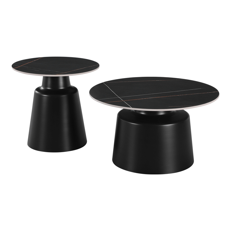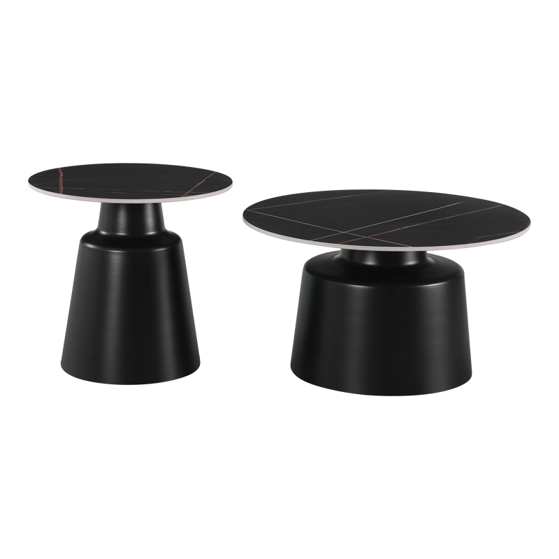 - Η επιφάνεια των τραπεζιών είναι κατασκευασμένη από sintered stone με τα χαρακτηριστικά “νερά” του μαρμάρου σε μαύρο χρώμα, δημιουργώντας μια αίσθηση πολυτέλειας και φινέτσας.