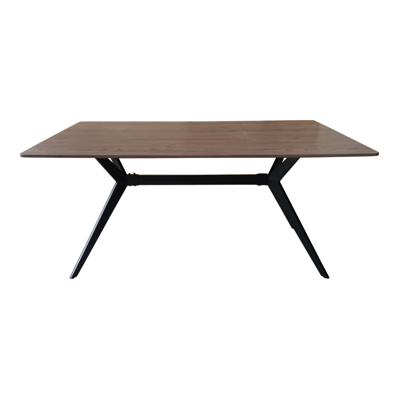Δώστε στον χώρο σας έναν αέρα μοντέρνας κομψότητας με αυτό το εντυπωσιακό ορθογώνιο τραπέζι Ezali. Η επιφάνεια με την όψη ξύλου προσδίδει ζεστασιά και φυσικότητα, ενώ η τολμηρή, μαύρη μεταλλική βάση με τα διασταυρούμενα πόδια και την κεντρική ενίσχυση, αποτελεί ένα ξεχωριστό αρχιτεκτονικό στοιχείο που μαγνητίζει τα βλέμματα.