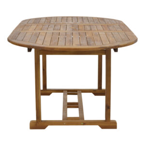 * Κατασκευή από ξύλο ακακίας. Η Acacia είναι γνωστή για την αντοχή της και την ιδιαίτερη αισθητική της, καθιστώντας αυτό το τραπέζι ιδανικό για χρήση σε εξωτερικούς χώρους, όπως κήπους, βεράντες ή αίθρια. Τα λεία φινιρίσματα του από φυσικό ξύλο αναδεικνύουν τις φυσικές γραμμές και την υφή του ξύλου, προσφέροντας μια αίσθηση αυθεντικότητας και ευχάριστη απλότητα.