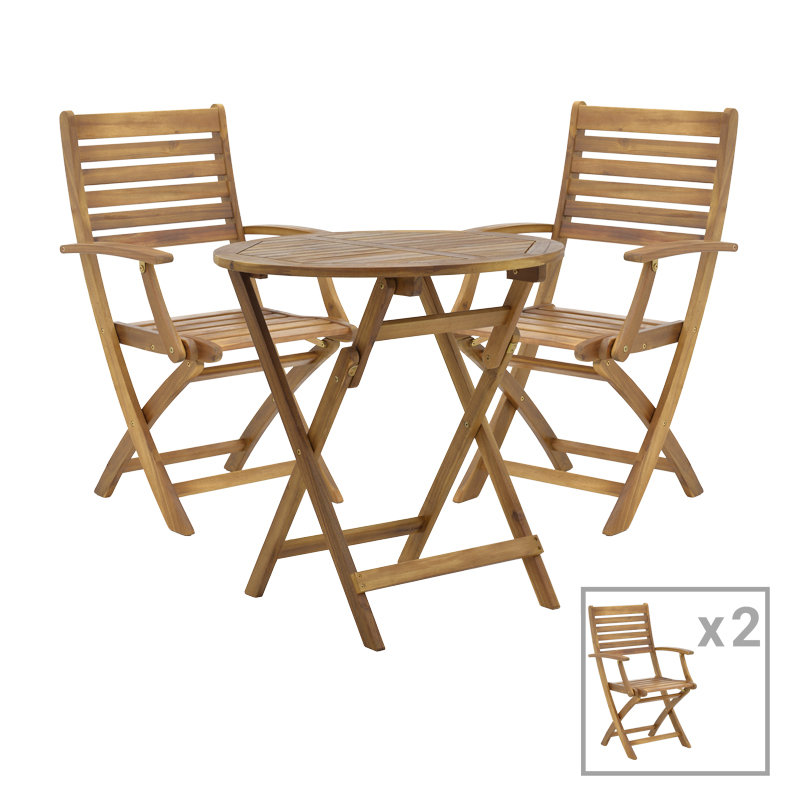 Τραπεζαρία Gorpo-Carpuva pakoworld σετ 3τεμ πτυσσόμενο φυσικό μασίφ ξύλο ακακίας Φ70×74εκ