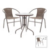 - Κυρίως επιφάνεια τραπεζιού από PE rattan. Το PE rattan είναι ένα είδος οικολογικού συνθετικού rattan, ανακυκλώσιμο και με μεγαλύτερη ανθεκτικότητα σε σχέση με τα άλλα είδη.