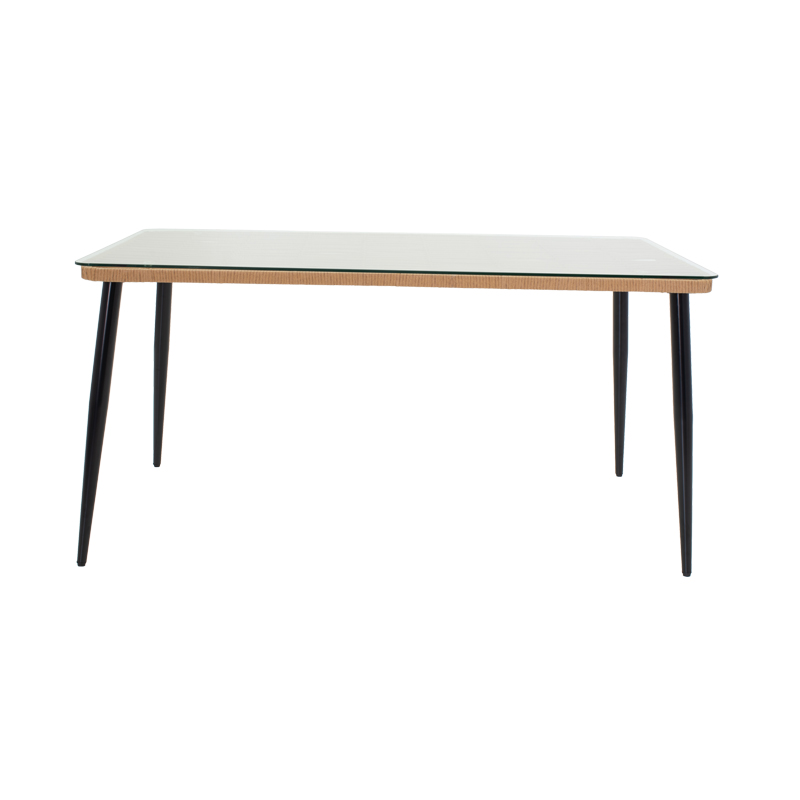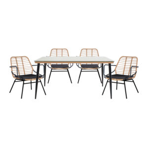 Τραπεζαρία Naoki A pakoworld σετ 5 τμχ rattan φυσικό-μαύρο μέταλλο-γυαλί 160x90x78εκ