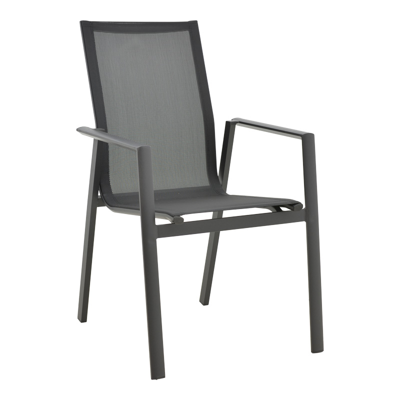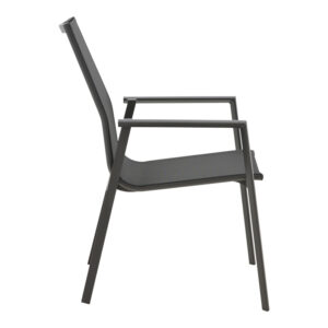 - Σταθερός σκελετός από εξαιρετικής ποιότητας αλουμίνιο με αντοχή στην καταπόνηση και στη φθορά. Κυρίως σώμα καρέκλας από εξαιρετικής ποιότητας textilene. Το textilene είναι ύφασμα μεγάλης αντοχής στην ηλιακή ακτινοβολία και την υγρασία ενώ παράλληλα αφήνει το δέρμα να “αναπνέει” δημιουργώντας έτσι άνεση στο κάθισμα.