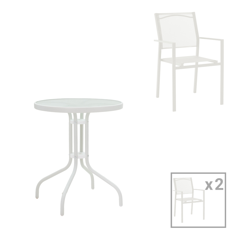 To σετ περιλαμβάνει δύο πολυθρόνες και ένα τραπέζι.