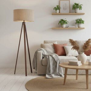 Φωτιστικό δαπέδου PWL-1059 pakoworld Ε27 μπεζ-καρυδί Φ38×140εκ