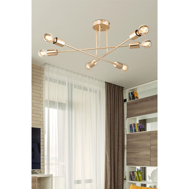 Μοντέρνο μεταλλικό φωτιστικό, ιδανικό για τη διακόσμηση σύγχρονων επαγγελματικών και οικιακών χώρων. Κατασκευασμένο με εξαιρετική ποιότητα, σε χρυσό χρώμα και με ένα εξαιρετικό design που το κάνει να ξεχωρίζει.
