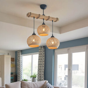 - Περιμετρικά του ξύλου φέρει σχοινί που προσθέτει μία boho πινελιά στο φωτιστικό και απογειώνει το αισθητικό αποτέλεσμα.