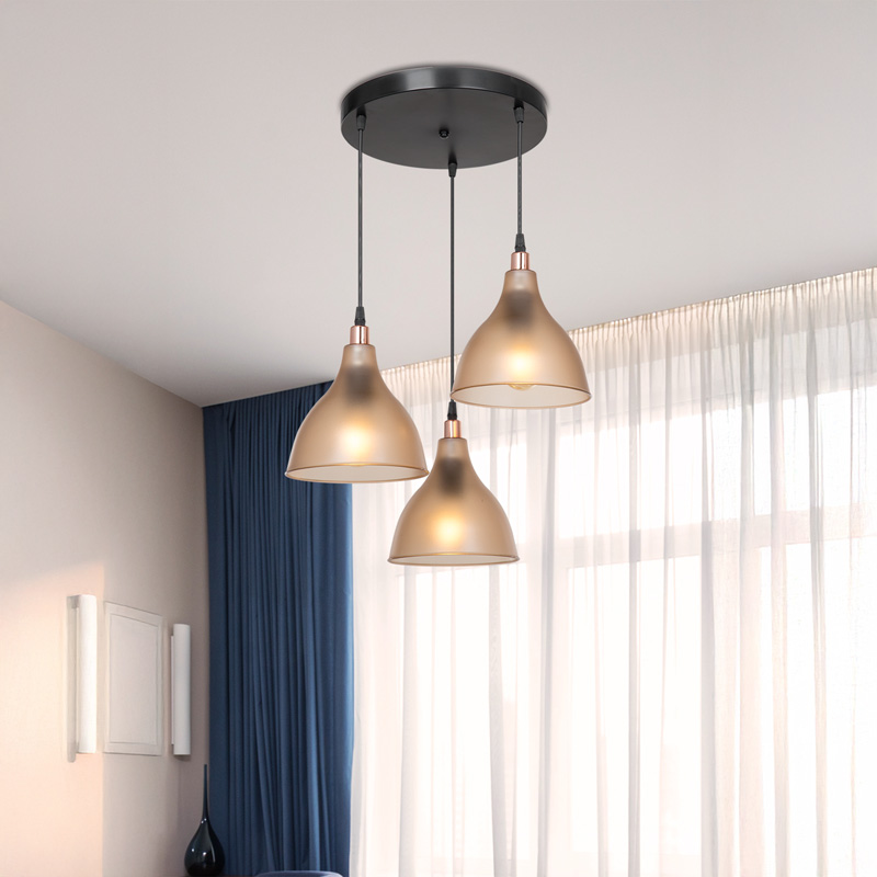 Φωτιστικό οροφής τρίφωτο Orazio pakoworld Ε27 μελί-μαύρο Φ40×80εκ