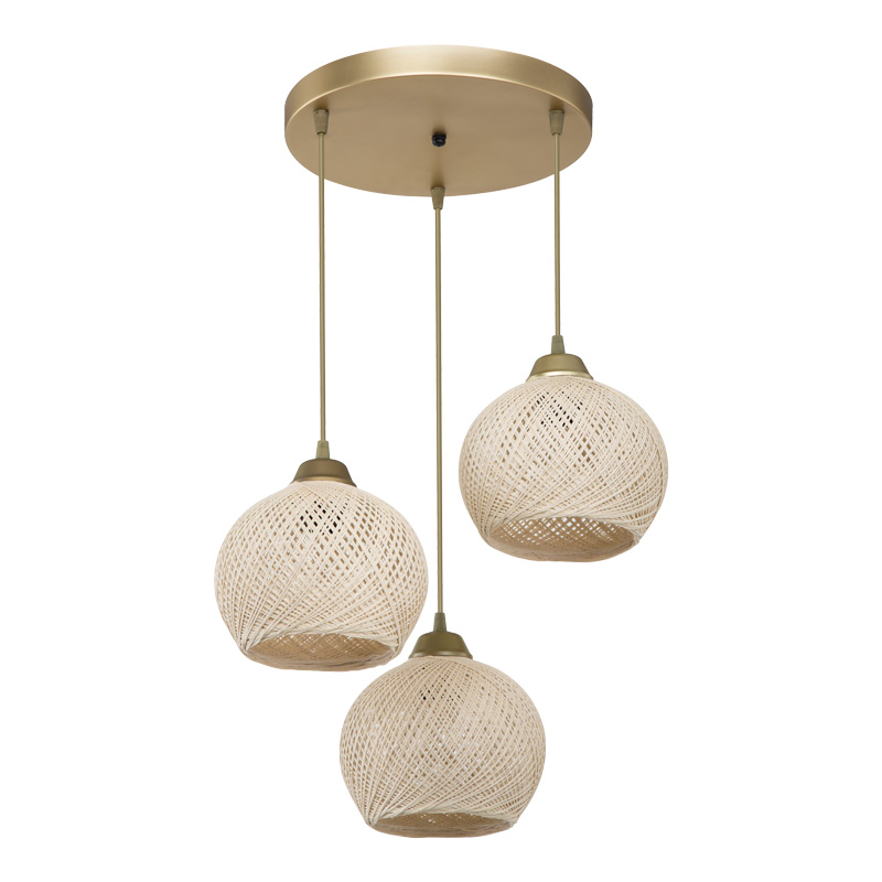 Φωτιστικό οροφής τρίφωτο PWL-1121 pakoworld Ε27 κρεμ-χρυσό Φ40×75εκ